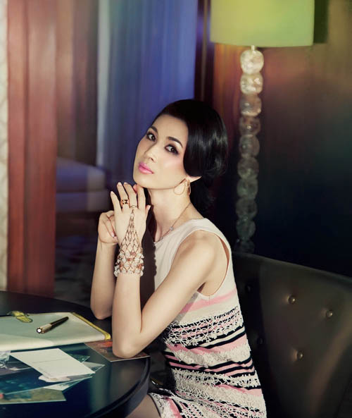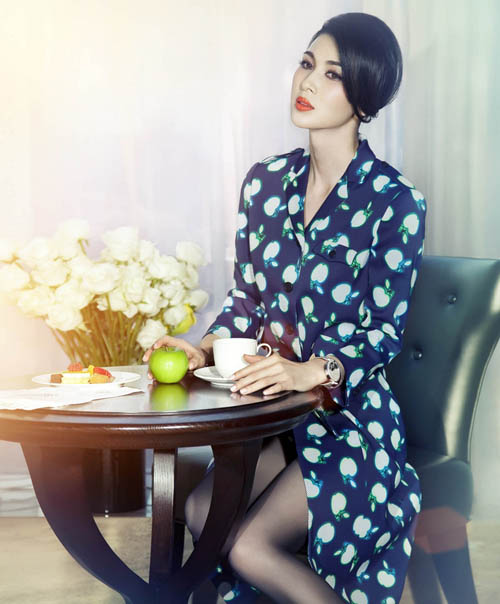 中國鞋網4月13日訊,近日,童蕾為某高端奢侈品雜志拍攝了一組時尚大片。一向給人恬靜雅致感覺的童蕾,這次演繹出了別樣風情,高雅的妝容配以復古風的服飾,經過童蕾的一番詮釋,將含蓄的知性美和高貴的名媛風范展現的淋漓盡致,盡顯奢華魅力。