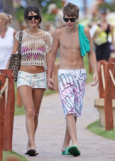 中國鞋網5月28日訊,近日,賈斯汀比伯攜女友到夏威夷海灘度假,女友身材嬌好。賈斯丁和女友穿著沙灘鞋服,漫步在小道上,甚至二人還在沙灘忘情擁吻。