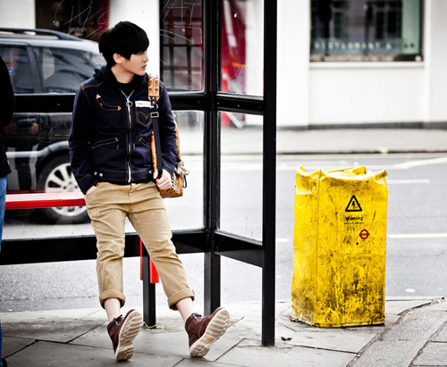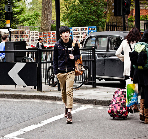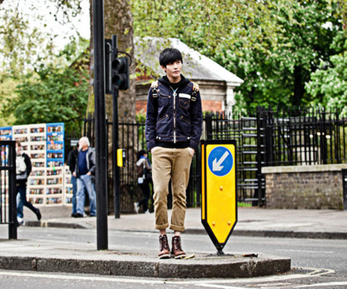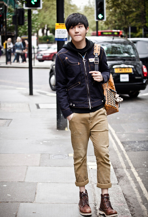 【中國鞋網-名人圖庫】前不久,天娛傳媒旗下藝人李煒化身時尚潮男現身倫敦街頭,拍攝了一組街頭隨照。今日,街拍組圖也正是曝光,照片中的李煒,深藍色牛仔外套外加黑色帽衫搭配一條卡其色布褲,潮男風味盡顯無疑,而布滿著金屬氣息的深黃色雙肩包以及一雙深棕色馬丁靴更是增添了幾分“質感”。