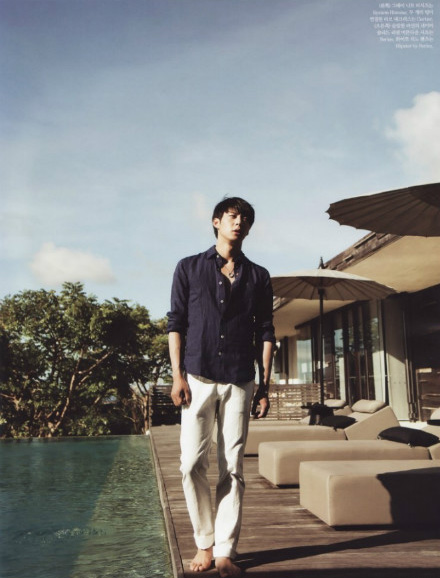 【中國鞋網-名人圖庫】韓國男團JYJ成員樸有天近日為時尚雜志拍攝了一組巴厘島寫真。他獨享自由時光,清爽的短發,沁涼的夏裝,散發了悠然自在的韻味。