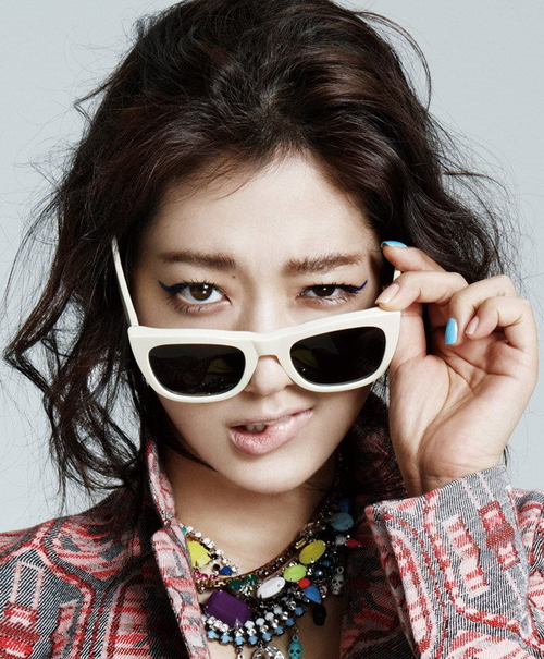 【中國鞋網-名人圖庫】韓星樸信惠日前為某美容雜志拍攝一組寫真,脫去以往的清純少女形象,身著各款個性十足的裝扮,配戴華麗的飾品,以清涼的藍色眼妝突顯獨有的氣質,盡展多樣魅力。