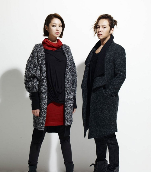 張根碩外面套一件黑色毛線大衣,表演了上下一身黑時裝;高俊熙則在外面套一件灰黑色毛線大衣,展現(xiàn)了高傲有個性的造型。