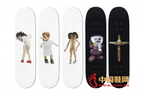 這次他們與街頭品牌Supreme合作,把自己的經典作品印在滑板之上,例如有性器官鼻子的小男孩,或者雙頭的怪物女孩等等,絕對是藝術與街頭文化的完美結合,這一系列滑板將于10月11日正式發售。