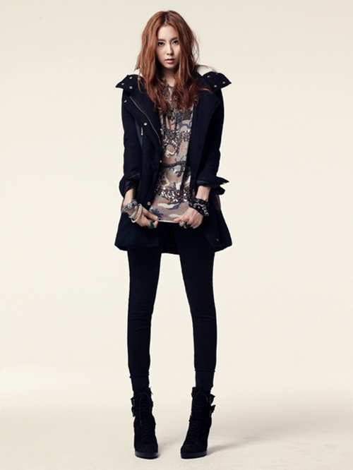 【中國鞋網-名人圖庫】韓團After School成員UEE日前為某服飾品牌拍攝一組寫真,身著休閑大衣搭配黑色修身褲等,以各種時尚隨性的造型突顯優越比例的身高, 大秀曼妙高挑身材。