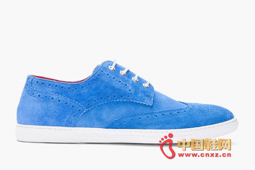 中國鞋網10月23日訊,前兩日我們曾經在加拿大知名店鋪HAVEN 上看到時裝品牌COMME des Garcons 旗下支線JUNYA WATANABE MAN 的2012 秋冬系列,其中有三款Wingtip 鞋款是跟英國靴履老牌Tricker’s 合作的,而今日我們又看到一雙藍色亮騷款Wingtip Sneakers 掩藏其后。整雙鞋采用了藍色麂皮材質,與鮮紅色的內里呈現強烈的色彩對比效果,此外我們還發現了在鞋帶上的金屬穿孔配色也換成了更為亮眼的銀白色,可能正是為了突出藍色的外身吧。現在這款鞋可以在SSENSE 購買。