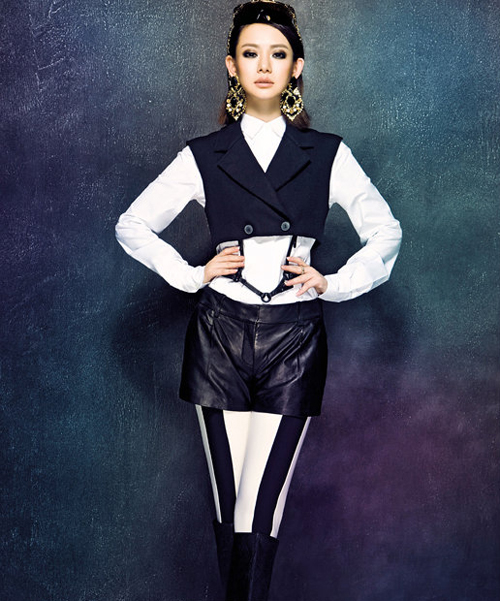 【中國鞋網-名人圖庫】日前,戚薇為某時尚雜志拍攝了一組全新時裝大片,一直在穿衣造型上很有自我風格的她,用皮衣質地的長褲或短裙與多彩線衫混搭,營造出了一種凌冽又不乏溫暖色調的秋冬風潮。