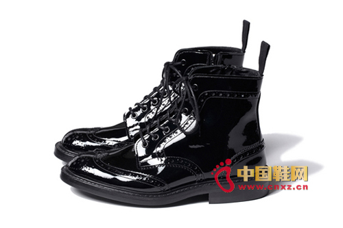 中國鞋網10月26日訊,英國百年靴履品牌Tricker's 可謂是風頭正勁,各路品牌都在爭相與其合作,從而掀起一陣靴履熱,這不又跟日本的服飾品牌SOPHNET. 擦出了火花,不過雙方已經有了多次合作的經驗,這一次帶來的是一雙Brogue Country Boots。整個鞋身都換上了華麗的漆皮材質,遠看去似乎就如一面光潔的鏡子,鞋帶也是經過特別的WAXED 處理,配上黑色的外衣整體呈現出格外精致的美感,在街道中亮相無疑是個矚目的焦點,當然前提你需HOLD 住這樣的漆皮款。相信會在近期的SOPHNET. 上架,喜歡的朋友可以留意下。