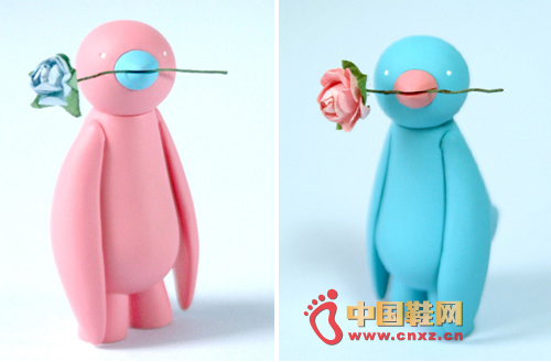 中國鞋網11月7日訊,玩偶已經為2013年的情人節做準備!Mr.Clement推出其最新作品 - the love ji ja,兩只可愛的有設計味道的小鳥,粉藍粉紅為情侶最佳配色。難能可貴的每鳥嘴里都叼著一朵純手工制作的迷你玫瑰,分別是和它們身體相呼應的粉紅玫瑰和藍玫瑰。名字叫ji za,別以為是法文,其實就是小鳥叫聲“吱喳”。作者本身是旅居歐洲的香港人,所以這名字特別有親切感。跟兒童玩具最大的分別就是設計師玩具的“超限量”,這對情人鳥僅僅發行150套,Figure size: 8.2cm X 4.5cm X 4cm。手快有,手慢無!筆者可能都要為自己的TA提前入貨呢!