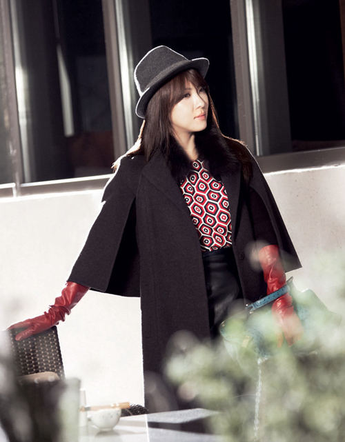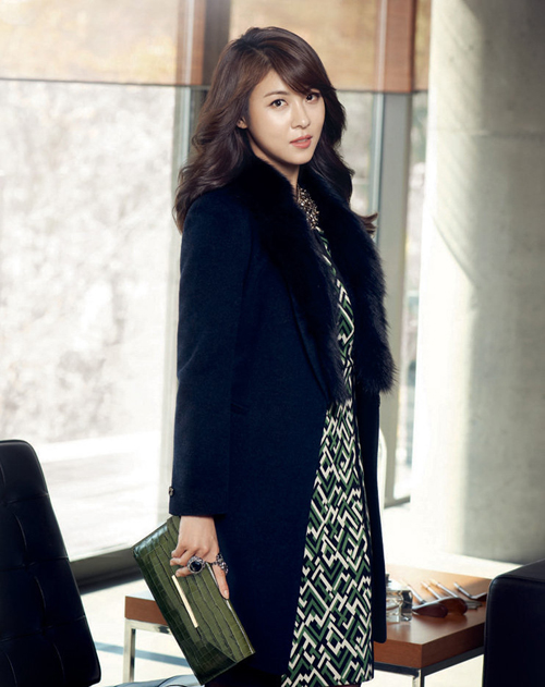 【中國鞋網-名人圖庫】韓國演員河智苑日前為某服飾品牌拍攝一組寫真,一身女人味十足的黑色毛領大衣內搭圖紋連衣裙等,展現了成熟性感的都市女人魅力。