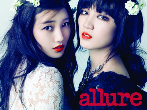 【中國鞋網-名人圖庫】韓國女團miss A成員秀智與孟佳日前為某時尚雜志拍攝一組寫真,兩人褪去以往少女形象,以唯美性感的造型配上誘惑紅唇,展現了靚麗迷人的女人魅力。
