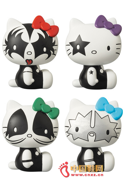 中國鞋網11月28日訊,成軍于1972年的KISS是美國最著名最有影響力的樂隊之一,怪異的臉譜,華麗的裝束,現場上的火焰嘔血,冒煙的吉他以及驚人的樂隊周邊銷售網絡是這支樂隊的風格標志。現在,這支搖滾元老攜手同樣是70年代出生的日本“國寶”- HELLO KITTY推出聯名公仔。把這只可愛小貓扮演成樂隊每一個成員,賦予他們的浮夸妝,如星星、閃電等圖騰標志,誓要把搖滾精神傳播到可愛玩偶界,高約10厘米,每個售價約2,940元日元。