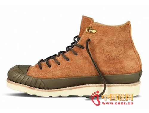 中國鞋網(wǎng)11月29日訊,Converse First String最近就以大熱的Duck Boots設計為靈感,打造出最新的Chuck Taylor All Star Bosey Boot鞋款。此鞋款備有高筒與低筒以供選擇,分別以麂皮和帆布打造鞋身,并于中底以上部分連接鞋頭位置加入包膠,并加上獨特的坑紋設計,結(jié)合了Duck Boots的設計精髓。高筒款式由棕色麂皮配合橄欖綠色包膠,極具復古風格,而低筒款式的黑色鞋身設定則別有一番暗黑型格。鞋款搭載了Vibram出品的Christy Sole鞋底,較為輕量化之余也提供不錯的耐久度。鞋款定價約為$150美元(約合人民幣940元),即將于短時間內(nèi)公開發(fā)售。
