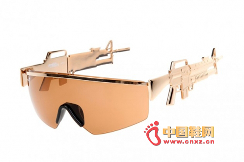 最近,英國眼鏡品牌Linda Farrow推出了一款由Jeremy Scott設計的2013年春季太陽眼鏡,亮點則在以M16外形打造的鏡架,先不論佩戴舒服與否,頗為碩大的“AK-47”架在雙耳上實在是相當浮夸!此款Jeremy Scott x Linda Farrow的太陽眼鏡帶有金銀兩個配色,現已在colette發售中。不知道過段時間Jeremy Scott會不會出齊其余槍型呢?