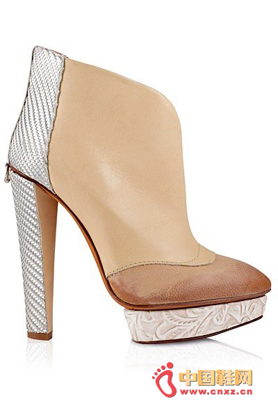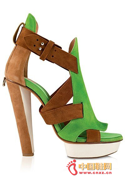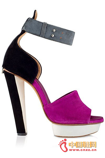 中國鞋網(wǎng)12月12日訊, 意大利高端女鞋品牌Guillaume Hinfray 2013春夏系列以兼顧摩登的款式、舒適穿著感的美鞋為都市女性帶來優(yōu)質(zhì)的穿搭享受。整個系列以柔和明亮的粉紫、翠綠以及米色作為主色調(diào),加高的防水臺以及多數(shù)粗跟的設(shè)計更符合人體工學(xué)原理。前衛(wèi)而又摩登的金屬質(zhì)感雕刻皮鞋面是Guillaume Hinfray的一大特色,制成的短靴或者平跟鞋等都是非常別致的單品。