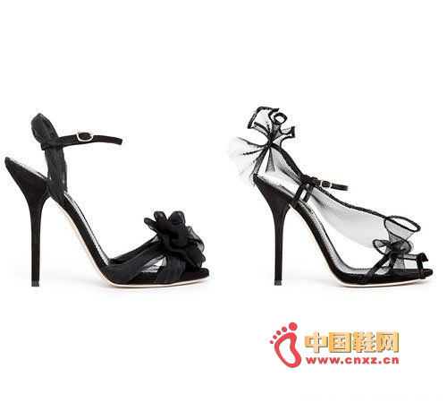 輕柔薄紗織就的絲巾花朵在本季鞋履上相當出彩,那些透明飄逸的薄紗纏繞在鞋面上,織就出柔美的女性特質。除了花朵裝飾,鞋面上海鑲嵌了大量奢華耀眼的水鉆以及鉚釘作為裝飾物。