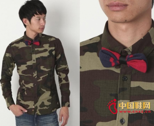 中國鞋網12月15日訊,若問我永不過時的元素有哪些,迷彩肯定能排上名次,今年更是在各種街拍單元中看見各路達人嘗試迷彩,大到衣物,小到配飾。而今次,也為大家推薦一款同類型單品,便是ABAHOUSE推出的這款迷彩襯衫,在如今這個季節,正好可以放到里層做搭配之用,而且衣款剪裁也比較貼身,有效地修飾了身形,另外,你可以學習圖中Model的搭配方式,帶上一個精致的小領結,會是很不錯的搭配,喜歡的朋友們不妨留意。