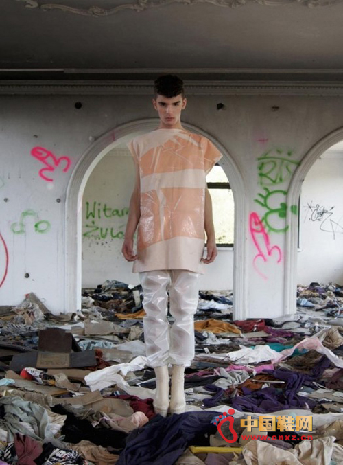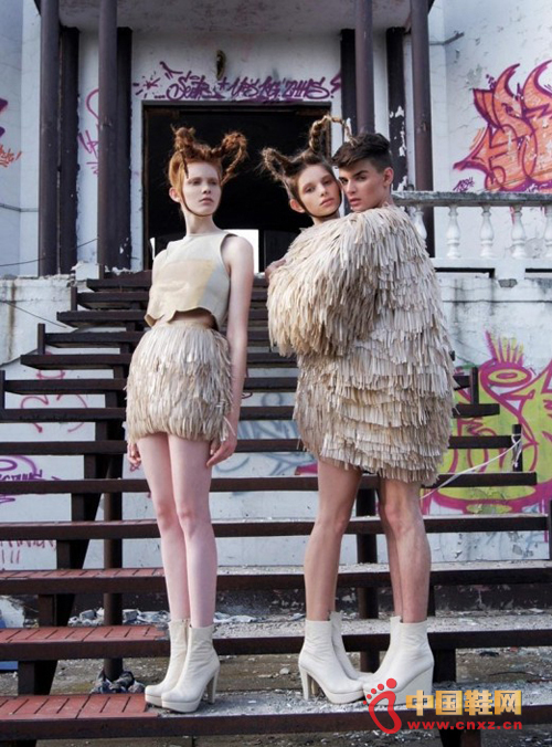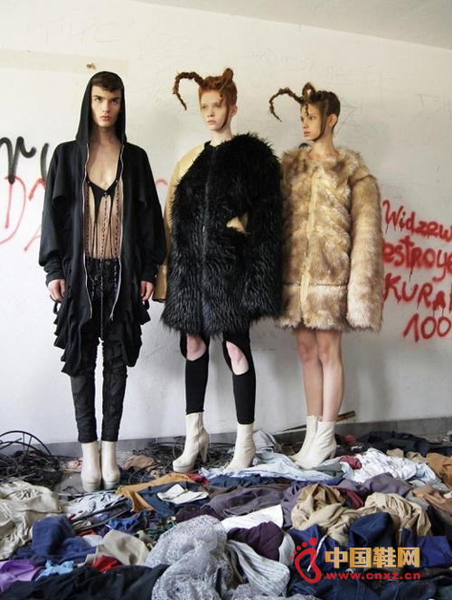 中國鞋網(wǎng)12月20日訊,波蘭品牌Jakub Pieczarkowski 以古靈精怪的發(fā)型妝容為主題發(fā)布了一組2012秋冬系列大片,此次拍攝的場景選擇也別有新意,不僅在是在廢棄的房屋內(nèi),地面更用舊衣衫鋪陳。系列中塑膠質(zhì)感面料的拼接,以及搶眼的皮草、流蘇設計與整個大片的氛圍可謂完美結(jié)合。
