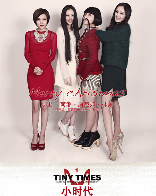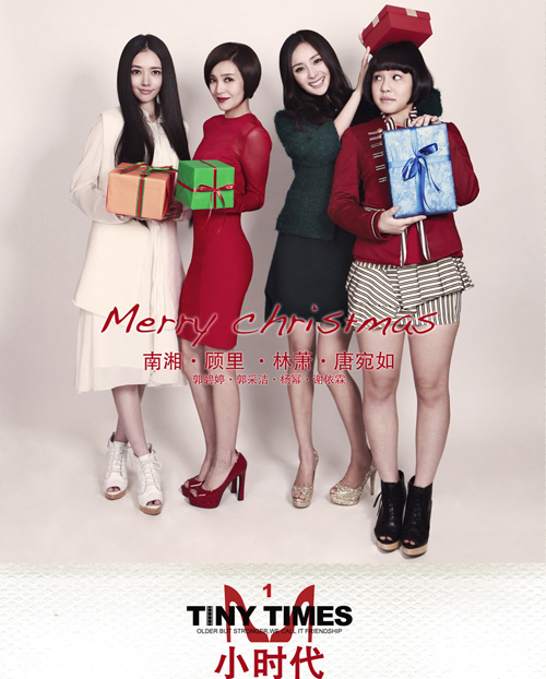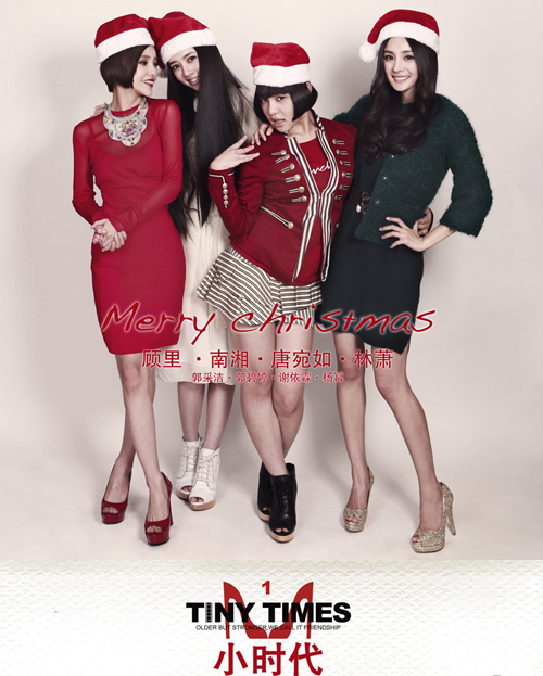 【中國鞋網-名人圖庫】近日,電影《小時代》的主演們拍攝了一組圣誕大片,片中楊冪、郭采潔、郭碧婷以及“hold住姐”謝依霖四位“最美”女主演首次齊亮相,“hold住姐”謝依霖依舊不改搞怪本色,迷你短裙裝格外搶眼。四人頭戴圣誕帽給末日之后這個特殊的圣誕節送上最美的祝福。電影中對手戲較多的鳳小岳、楊冪和陳學冬還單獨拍攝了一組圣誕送大禮的宣傳照,片中鳳小岳冷酷的屹立在互相打鬧的陳學冬與楊冪身邊,似乎也暗示了三人在電影中的復雜關系。這組宣傳照中演員們歡快活潑的風格格外醒目,這也恰恰突出了電影《小時代》青春時尚的基調。