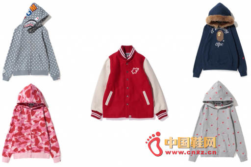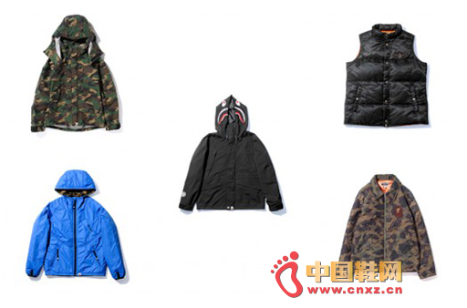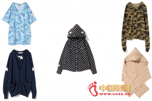 在明年的春夏季新品中,可以看到猿人的經典元素紛紛出現,包括“木村”大格紋、鯊魚頭、各色迷彩等多種BAPE標志圖案。男裝的鯊魚夾克、格紋襯衫,女裝的大領口長tee、抱球外套、針織毛衣等更是極為推薦之單品。這批2013年春夏季的新品將率先于BAPE紐約門店與網店進行發售,各位猿人迷請密切留意!