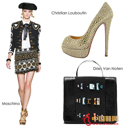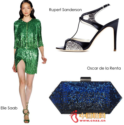 中國鞋網1月3日訊,華麗的珠片,密鑲的水鉆,絢麗的彩石,金屬光澤的材質……我們有各種Bling Bling風格單品選擇來閃耀整個冬季,從Christian Louboutin、Diego Dolcini到Oscar de la Rent,任意一款閃亮鞋包都能讓角落的你都輕而易舉成為備受矚目的焦點。