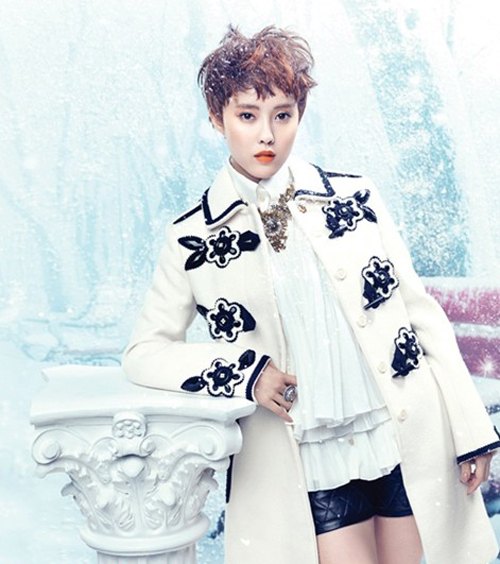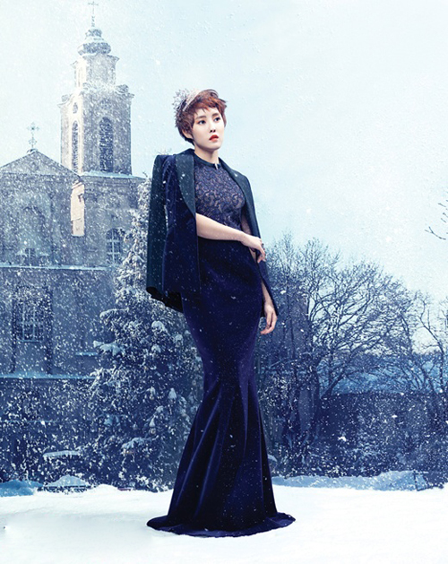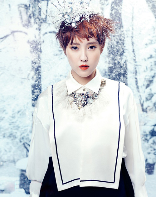【中國鞋網-名人圖庫】韓國女團T-ara成員孝敏日前攜手某時尚雜志拍攝一組寫真,一頭清爽帥氣的短發,身穿貴氣迷人的黑色花紋禮服,披著干練夾克、如夢幻中走出的仙女一般迷人至極。