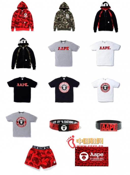 中國鞋網1月10日訊,為了迎接農歷新年的到來,Aape BY A BATHING APE推出了全新的賀年系列,本次的單品除了運用經典的綠迷彩外,大部分商品則換上了相當喜慶的紅迷彩圖案,過年的時候著用貌似是個不錯的選擇。而單品的種類包括了衛衣、短Tee、腰帶,相當特別的是本次推出了紅迷彩內褲,本命年的朋友絕對可以把其列入buy list。整個系列將于1月16日在香港及澳門的Aape門店開始發售,近期有意去香港購物的朋友別錯過了。