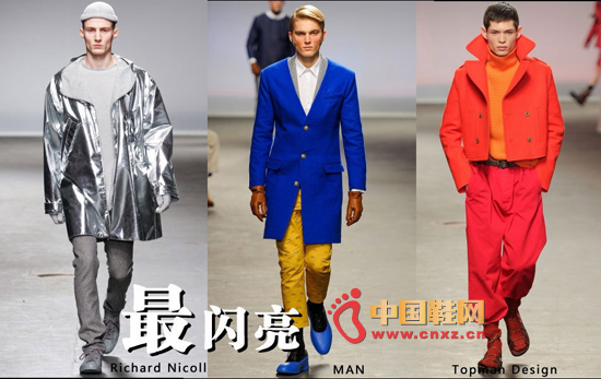 金屬的銀色、寶藍色與亮黃色的撞色、紅色系顏色的不同混搭……這些鮮亮的顏色讓男裝也嬌艷無比。