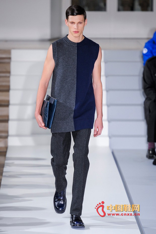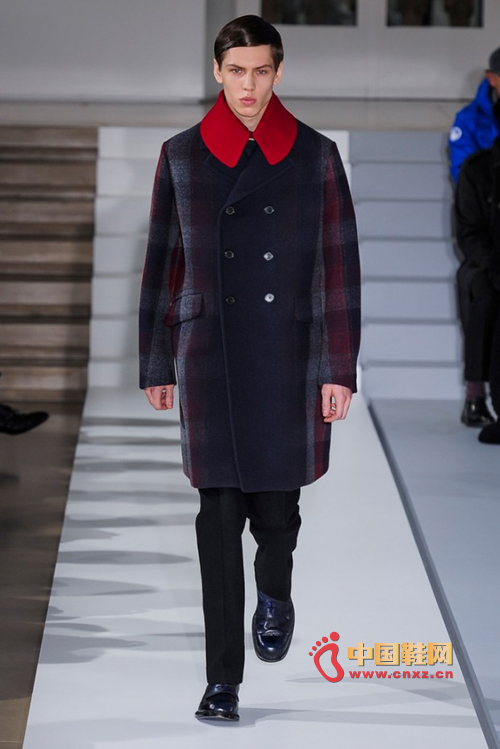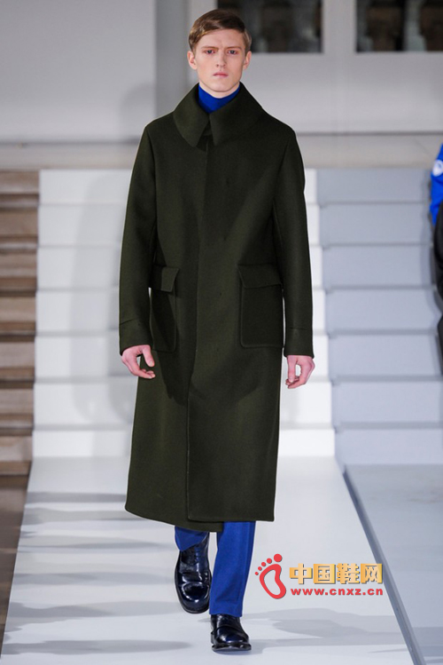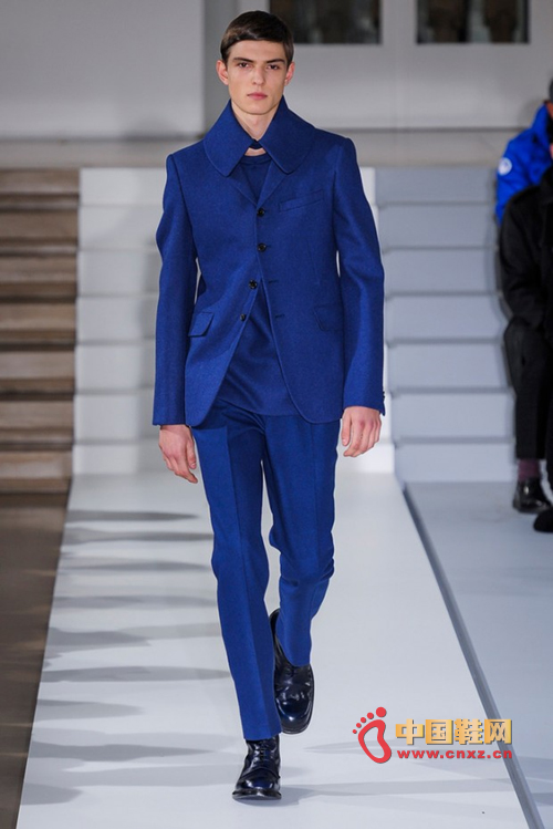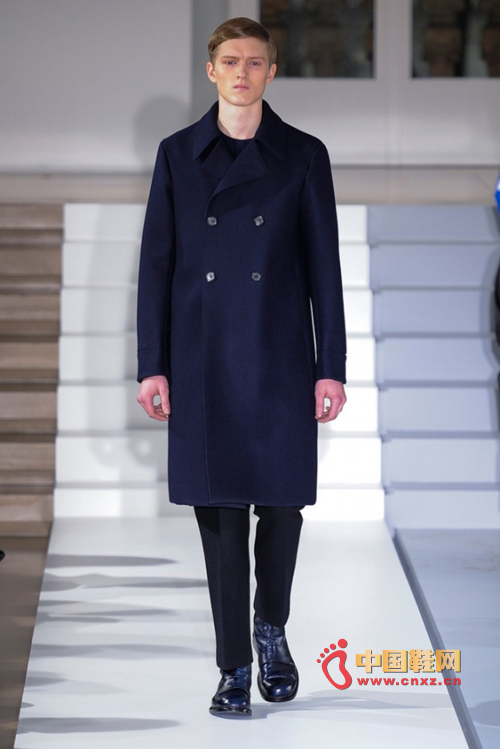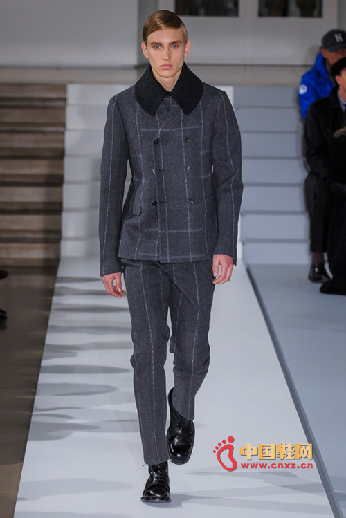以與 2007 年秋冬季系列類似復古的雙排扣大衣和純色的修身西服套裝開場,Jil Sander 似乎是想對 Raf Simons 接手后第二季的進行一次顛覆,在堅持采用來自日本的創新面料的同時,類似弧光燈的設計和撞色元素加入到品牌擅長的針織羊絨衫中,而 Removable French collar 可拆卸法式領作為本次的亮點出現在軍事風格外套的搭配上,與干凈俐落的剪裁相輔相成帶來強烈的摩登感。