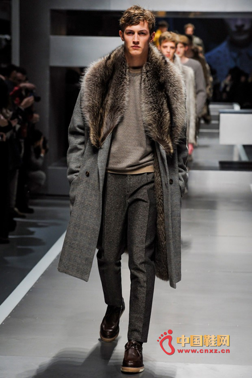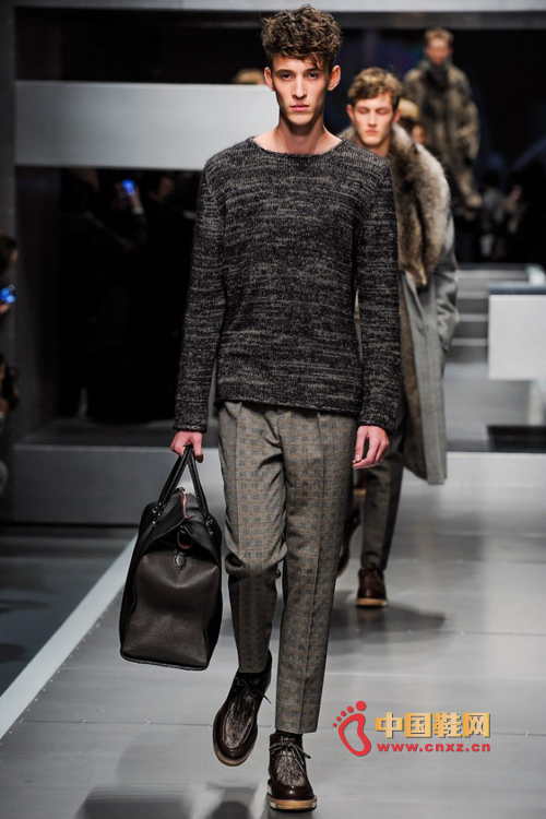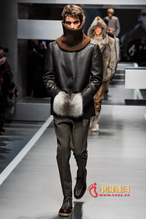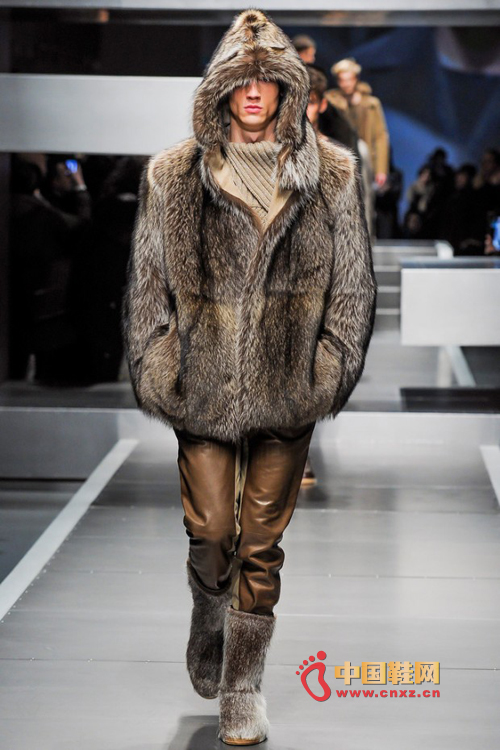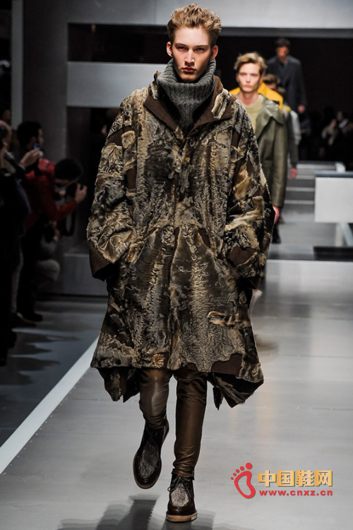 中國鞋網(wǎng)1月16日訊,由家族繼承人 Silvia Venturini Fendi 負(fù)責(zé)男裝設(shè)計(jì)的義大利奢華品牌 Fendi 于日前在米蘭男裝周中發(fā)布了 2013 秋冬系列。也許是因?yàn)槿驓夂蜃兣蛘咴谧顦O端的天氣狀況中人類與自然的關(guān)系才能變得純粹,本系列設(shè)計(jì)師直接從北歐攝取靈感,通過厚實(shí)的針織衫、廓形的 Parka以及冰島漁民式的大衣營造出斯堪的納維亞半島的氛圍,亮面皮革、夸張皮草以及羊毛的運(yùn)用配合大地色系的貫穿亦為該系列添加多幾分戶外的氣息;此外,剪裁工整的西裝、綢緞翻領(lǐng)禮服以及修身的夾克更是給這個(gè)充滿地域風(fēng)情的系列融入了優(yōu)雅的質(zhì)感。