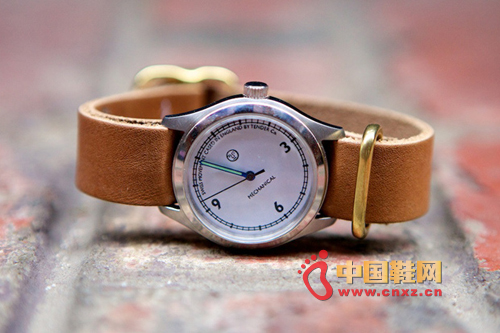 中國鞋網1月29日訊,來自英國的品牌 Tender Co. 以制作工人服起家,而最近他們就帶來了最新的 “Hands-On” 表款與各位見面。 “Hands-On” 在英國進行制作,內里搭載著瑞士制造的機芯,而表帶就用上耐磨的鞣料樹皮物料制成,咖啡色的造型亦充滿著復古懷舊的味道。受到二十世紀時特別為司機而設的手表所影響,設計師特別把表盤向右旋轉 45 度,使用家在駕駛時查閱時間時雙手可以緊握軚盤,而不會影響駕駛,非常細心,而表盤就以堅硬的亞克力水晶保護層蓋著。