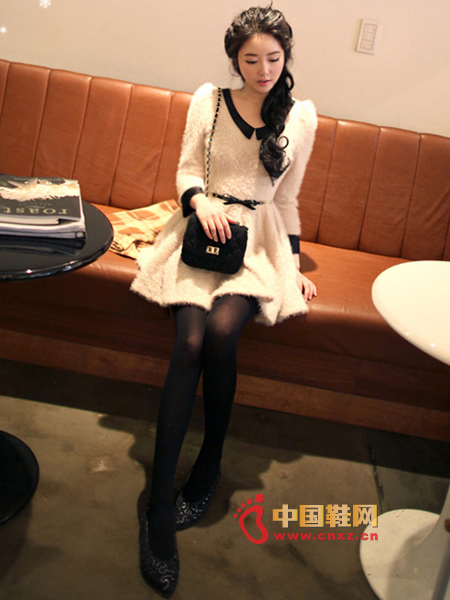 甜美款連身裙,毛呢的材質(zhì),時尚又有味道,袖口和領(lǐng)口的拼接,腰間的蝴蝶結(jié)設(shè)計,很有味道,渾身散發(fā)小清新的感覺。