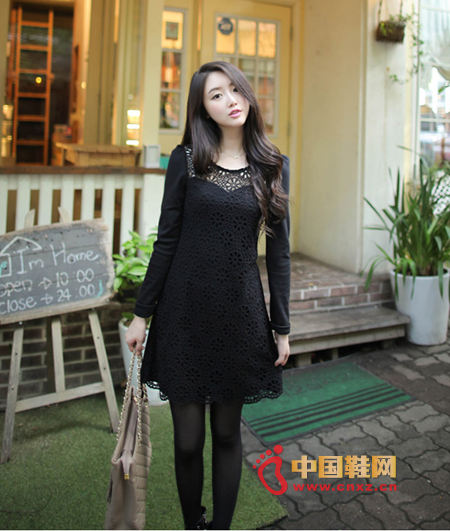 留空雕花連身裙,修身的剪裁,微微闊擺的設(shè)計,塑造了完美的腰身和拉長了腿部線條,鑲嵌的鏤空部分展現(xiàn)了些許性感味道。