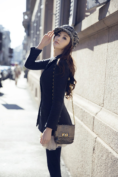 【中國鞋網(wǎng)-名人圖庫】吳佩慈春日米蘭街頭靚麗街拍,藍色虎頭恤配白襯衫牛仔褲黑皮靴,散發(fā)青春氣息,搭配桃紅拎包,輕盈跳躍,甜美清新。而黑色小香西裝外套配白色蕾絲上衣,黑色連身褲、皮靴、短沿帽,中性帥氣女孩的裝扮再與金屬鏈迷你挎包相結(jié)合,更是完美搭(專賣店)配。