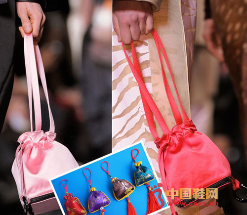 香袋即香荷包,一般專用米盛香料作飾物。也稱 “香囊”、“香桶”等。香袋與瓊瑤、玉環、香帕等,為古代人重要的佩飾之一。盛香料的小袋子。古時人們常佩帶在身上,用以辟穢惡之氣,也作裝飾品。Carven秀場上,模特拎著五顏六色的小包,像極了中國的“香袋”。