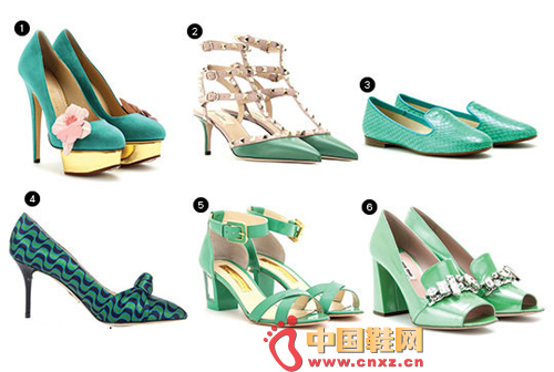 從中性的吸煙鞋,到性感的高跟鞋,翡翠綠如同暴風(fēng)般席卷了這個鞋履界,風(fēng)格迥異的各種美鞋,必有一雙適合你!甜美清新的Charlotte Olympia花朵高跟(圖1,715歐元,折合人民幣5800元),性感張揚(yáng)的Valentino鉚釘尖頭鞋(圖2,670歐元,折合人民幣5416元),帥氣簡約的Avec Modération吸煙鞋(圖3,259歐元,折合人民幣2093元),優(yōu)雅OL的Charlotte Olympia印花高跟(圖4,666美元,折合人民幣4141元),還是復(fù)古風(fēng)情的Rupert Sanderson綁帶涼鞋(圖5,649歐元,折合人民幣5245元)和Miu Miu魚嘴粗跟涼鞋(圖6,595歐元,折合人民幣4809元),翡翠綠真的非常百變!