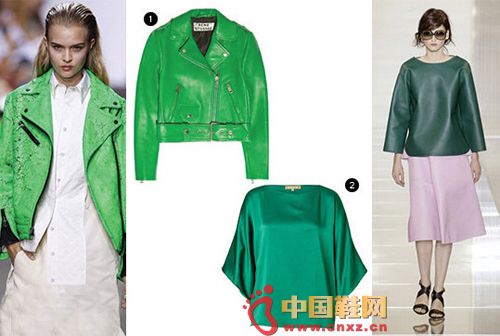 Acne(左圖模特)的帥氣硬朗和Marni的溫柔優雅(右圖模特),你更愛哪一種?推薦單品:Acne綠色皮衣(圖1,1300英鎊,折合人民幣12063元),Michael Kors真絲上衣(圖2,525美元,折合人民幣3264元)。