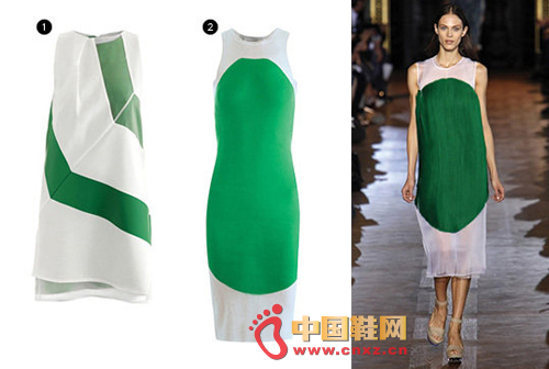 帶有新生和復蘇感覺的這抹翠綠,在早春這個季節最合適不過了。Stella McCartney秀場同款的這件綠白撞色長裙(圖2,977美元,折合人民幣6074元),撲面而來的清新脫俗,相信會讓無數優雅女為之心動。而Sportmax的這款幾何圖案的連衣裙(圖1,814美元,折合人民幣5061元),似乎有著異曲同工之妙。