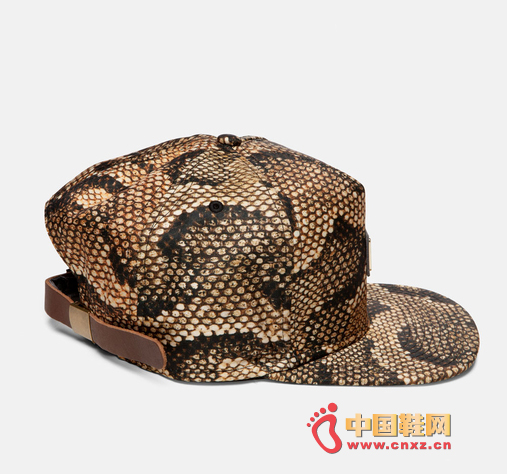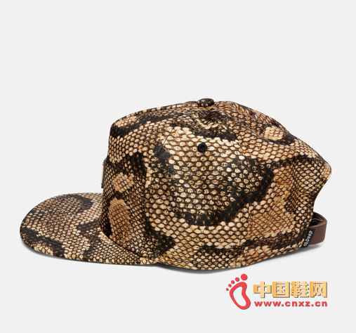 這款渾身覆蓋著著蟒蛇皮的棒球帽從感官上看便已經可以用驚人來形容,漂亮的蟒蛇鱗片覆蓋了帽子的整個cover。為了配合蛇皮所帶來的原始感,品牌用一條純皮PACK進行配搭。在帽子正面,一只刻有品牌LOGO的金屬牌鑲刻在其上,為帽款打造出些許高級質感。毋庸置疑,多樣化的設計元素為10.DEEP在SS季中贏得了更多的矚目,而品牌也在這一季度中兼顧了質量和設計感!在諸多蛇皮元素單品混戰的春季,這件單品能取得多少成績,讓我們拭目以待!