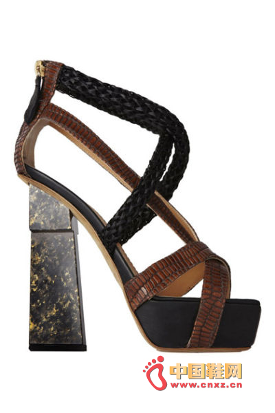 Aperlai的這款高跟鞋的鞋跟采用了長方形設計,方形鞋跟其實在許多鞋履中都有出現,但Aperlai的這款方形又不同于傳統的方形鞋跟,再加上別致的大理石色彩,使它脫穎而出。