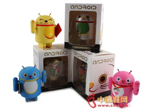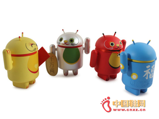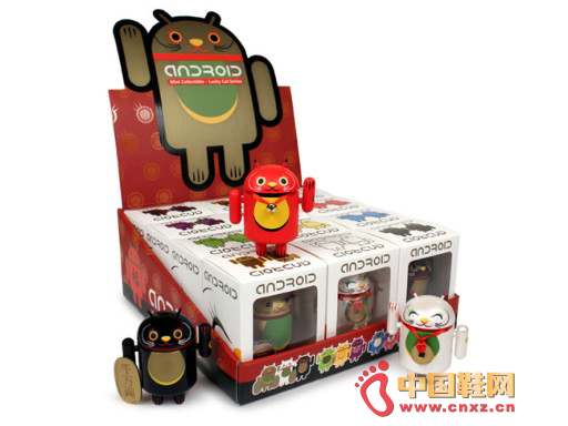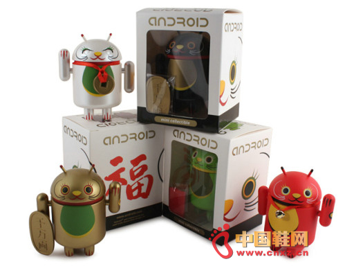 中國(guó)鞋網(wǎng)4月3日訊,Android一詞的本義指“機(jī)器人”,同時(shí)也是Google于2007年基于Linux平臺(tái)的開(kāi)源手機(jī)操作系統(tǒng)的名稱,已經(jīng)成為全球最流行手機(jī)系統(tǒng),托Android的福,這個(gè)安卓綠色機(jī)器人也大紅大紫,無(wú)處不在的綠色身影。也有不少玩家在其身上大玩藝術(shù),Shane Jessup x Dead Zebra推出了Mini Android Lucky Cat系列公仔。一改平時(shí)綠油油的小安,化身成各種顏色的招財(cái)貓。有笑臉盈盈的,有瞪大眼睛憨憨的表情,讓人忍俊不禁,好想擁有一只。