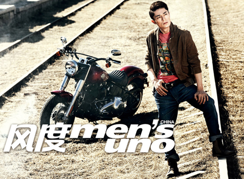 【中國鞋網-名人圖庫】近日,臺灣演員霍建華為某時尚雜志拍攝寫真大片,首嘗硬朗風格。春日陽光下,夾克、機車靴、牛仔褲,穿著極具西部風特色的霍建華目光堅毅、神情冷峻,“硬漢”氣場十足。