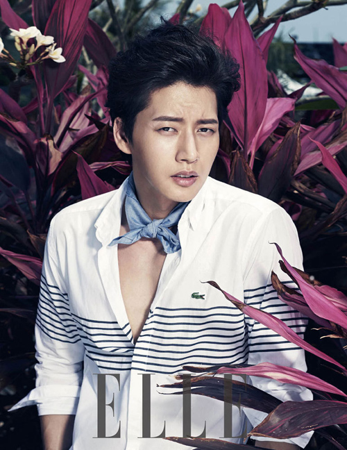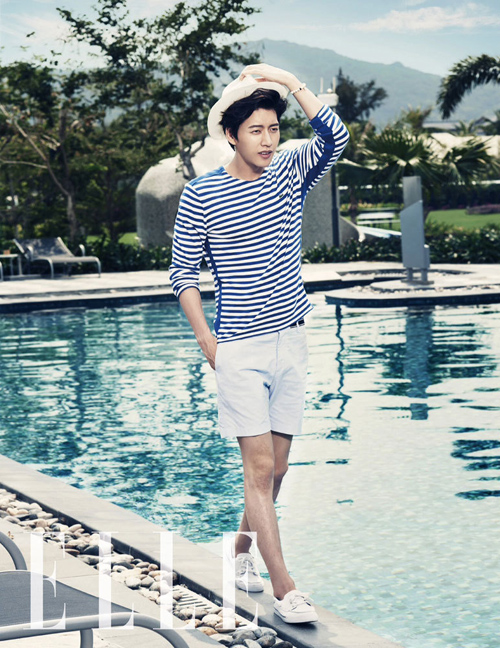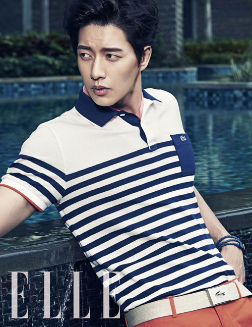 【中國鞋網(wǎng)-名人圖庫】韓國演員樸海鎮(zhèn)日前攜手某時尚雜志拍攝一組寫真,著條紋翻領(lǐng)衫搭配橘色繽紛褲等,充滿了都市摩登氣息,變身貴氣十足的夏日炫美男。