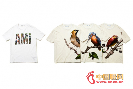 中國鞋網4月26日訊,由法國設計師 Alexandre Mattiussi 主理的品牌 AMI 最近與插畫家 Jeremy Schneider 合作,帶來富有藝術色彩的 T-Shirt 系列。這個以雀鳥為主題而打造的 T-Shirt 系列共包合兩款設計,并同樣以圖案作為主軸,當中寫上 AMI 標志的款式里面蘊含了八種不同品種的雀鳥,包括鶺鴒,知更鳥,翠鳥,太平鳥,鶇和云雀,而另一款就以其中三種雀鳥放大然后印在 T-Shirt 上,各有特色。這個雀鳥印花 T-Shirt 系列是日本的獨占單品,并以限量 200 件的形式發售,將于 4 月 26 日在日本上架。