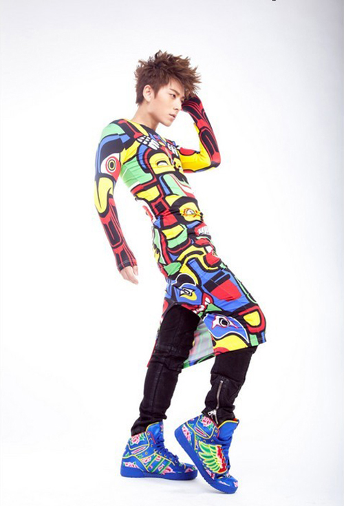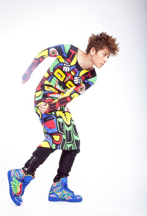 【中國鞋網-名人圖庫】陳翔近日受邀參加了《Easy》雜志的封面大片拍攝。陳翔突破以往黑白灰的造型,大膽選擇初夏火熱的炫彩風格上裝,并搭配黑色長褲和藍色翅膀鞋的個性裝扮。