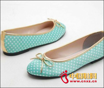 甜美系數頗高的小圓點平底鞋。輕松的流線型設計,配上精致小巧的蝴蝶結,瞬間就會讓你的小腳靚麗起來。涼意的淡淡藍色加上白色的小圓點,清涼中更顯氣質。