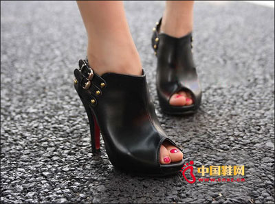 時尚批到搭扣魚嘴高跟短靴,非常的有精致的效果,很顯示身材