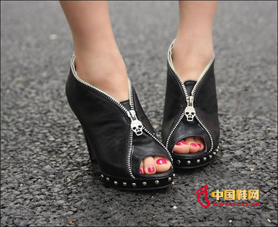 朋克風格的拉鏈骷髏頭魚嘴防水臺高跟鞋,非常的有精致的效果