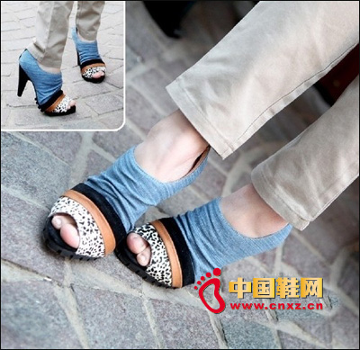 在牛仔元素巧妙的加入了豹紋的野性設計,時尚淺口露趾高跟鞋。非常的復合人體工學原理,自然適應腳部的立體維度