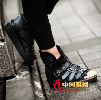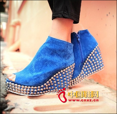 高腰帶有防水臺純皮質高跟鞋,鞋跟部帶有牟釘裝飾,酷酷的感覺,角度很好,標準鞋碼哦!