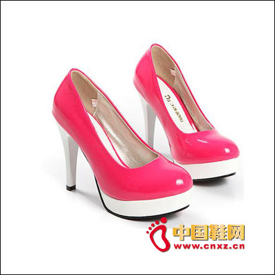 紅白搭配的一雙高跟鞋,厚厚的防水臺很時髦,漆皮的款式也顯得甜美。